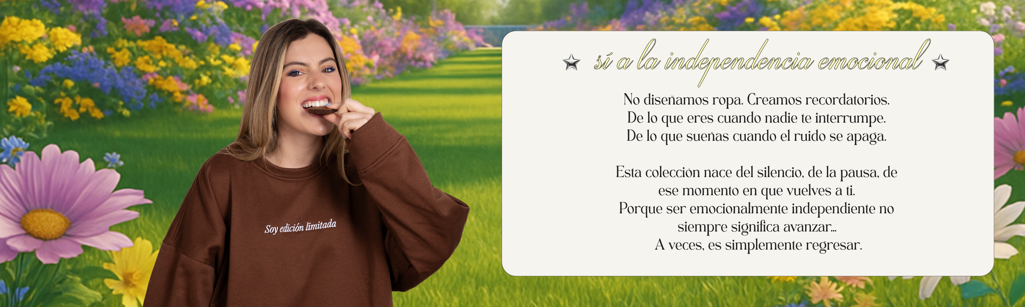 siento que es un producto de mucha calidad transmite la filosofía de la marca siento que es una prenda o bueno, son unas prendas que conectan con personalidades muy humanas muy íntegras de valores es bonito saber que hay empresas o hay emprendimientos que quieren crear para sembrar bienestar personal emocional mental que tristemente a medida que va pasando el tiempo son son temas que se han perdido un poco o que están quizá en riesgo, por priorizar otros factores como la apariencia encajar en la sociedad tener mucho materialmente o de fama y poco del ser entonces, pues es un producto que lleva a las personas a conectar con el ser con reconocer el valor propio o elevar el autoestima incrementar el amor el amor por uno mismo y también por mi entorno, entonces realmente es un producto que más allá de que de calidad es increíble el propósito con el que venden y la energía que trae la misma prenda y los mismos productos logra generar un impacto positivo que no se ha visto realmente personalmente en alguna otra marca.